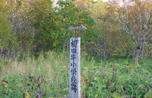 初田牛駅跡を見学した際に 初田牛小学校跡の立て看板を見つけたので ちょっと寄ってみることにした。 初田牛小学校は 1988(昭和63)年に厚床小学校へ統合されている。 立て看板の裏には 厚床小PTAと書かれている。 根室市の廃校はこの手の立て看板があるよ…