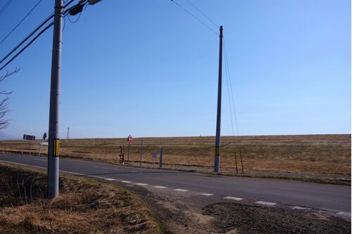 幌向村立晩翠尋常小学校跡を訪ねてみた。 何もなさそうな道の端に立て札と杭がある。 最後の方に 昭和10年(1935年)に南12線日15番地に校舎を 新築移転するまで使われていました。 とあるのでここに在ったのは90年ほど前ということか。 看板の裏…