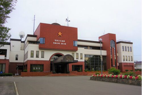 東川町役場。 何だか昔のホテルっぽい佇まい。 不思議な形の石碑。 町民憲章。 庁舎の壁にもある通り 東川町は写真の町で有名。 標語が書かれている丸太。 何だろう唐突に・・・って思ってたら なんとバス停だった。 ここで次に進む場所をしばらく考える。 …